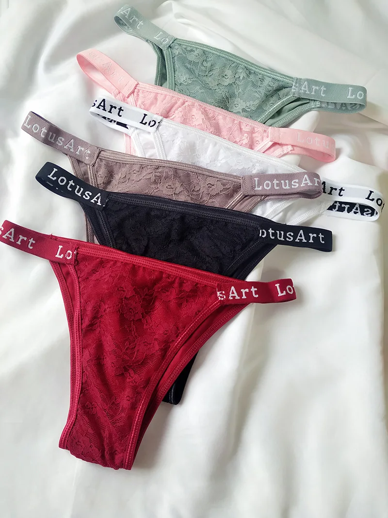 6 pièces Culottes String Femme Sport Respirant Taille Basse Sous-vêtements Lingerie Sexy Couleur Unie Dentelle G-String