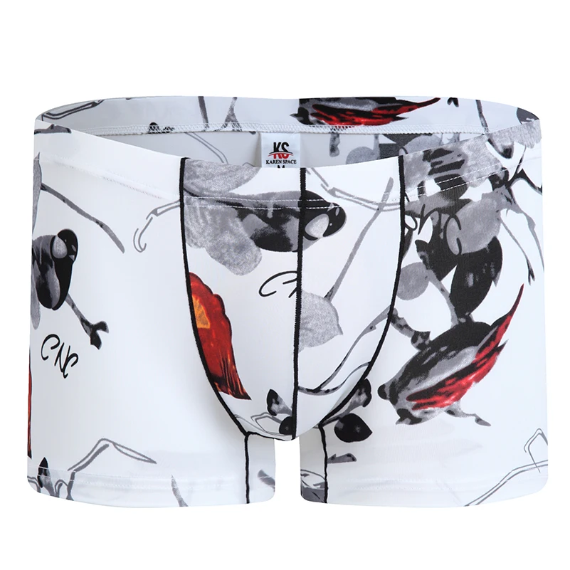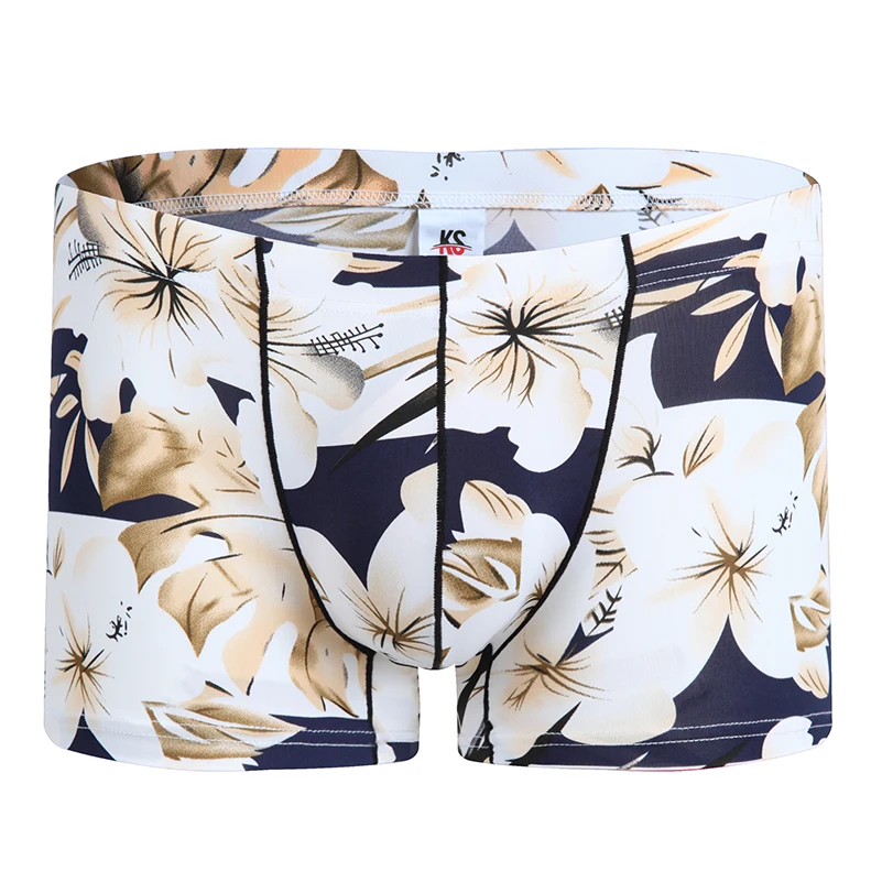 Boxer homme sexy – Sous-vêtements imprimés respirants, caleçon doux avec poche en U, en soie glacée