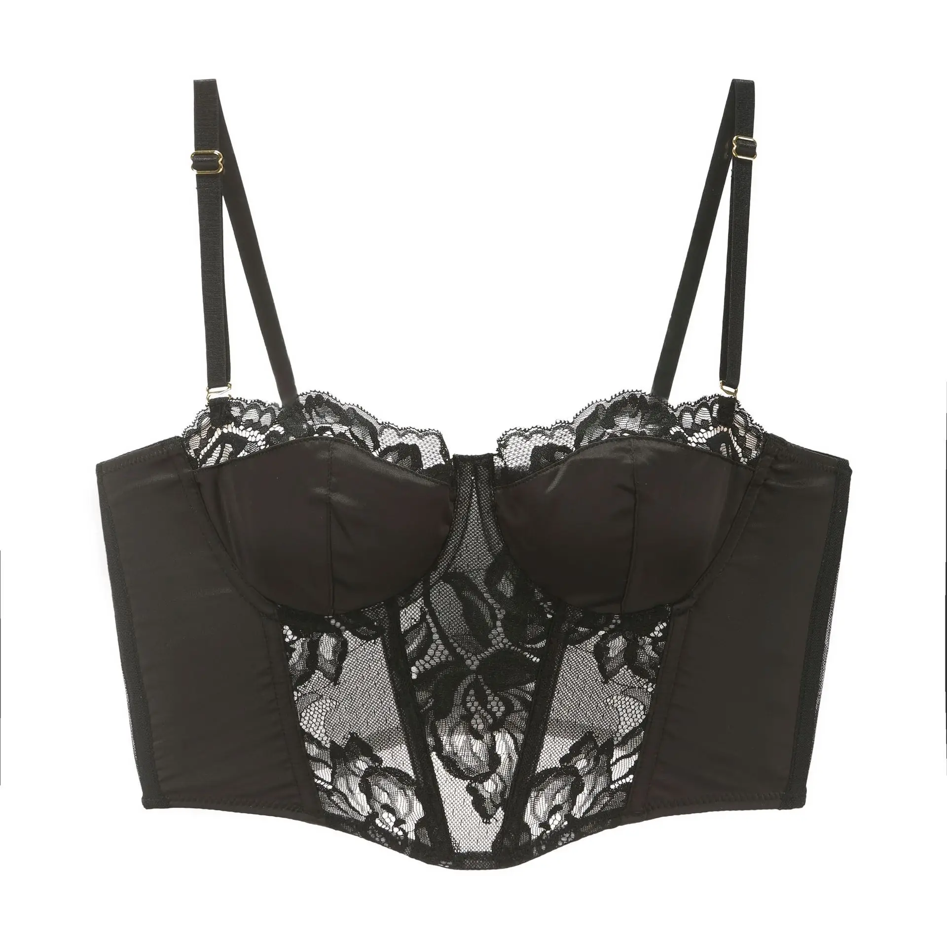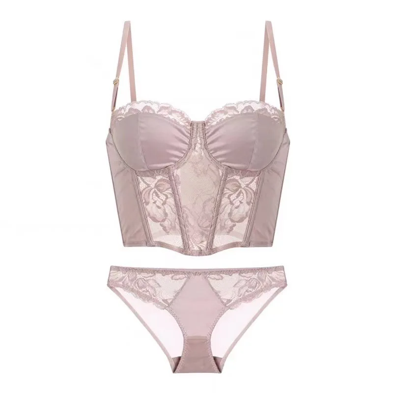 Ensemble de lingerie sexy en dentelle avec baleines longues, soutien-gorge fin, sous-vêtements, ensemble pour femme, style doux, camisoles sexy pour soirée ou vacances.